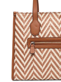 Silvana tote bag Highlights - Camel brown - Top zip fastening - Adjustable detachable shoulder strap - Two flat top handles - This piece comes complete with a protective dust bag. Imported Composition Outer: Polyester 71%, Cotton 18%, Celluloid 7%, other fibers 5% SIZE & FIT Measurement DEPTH 4.72 in(12 cm) HANDLE 16.14 in(41 cm) HEIGHT 10.23 in(26 cm) WIDTH 13.38 in(34 cm)