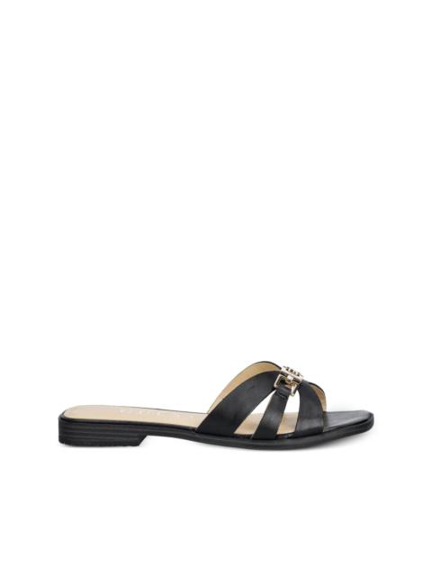 Slone slides Highlights - Black - Slip-on style - Square open toe - Flat sole Imported Composition Sole: Synthetic Rubber 100% Outer: Calf Leather 100% Lining: Polyurethane 100%