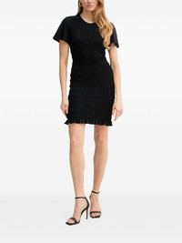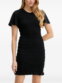 smocked ruffled-hem mini dress Highlights - Black - Smocked detailing - Short sleeves - Round neck - Ruffled hem - Flared skirt Imported Composition Modal 48%, Cotton 46%, Elastane 6% Washing instructions Machine Wash