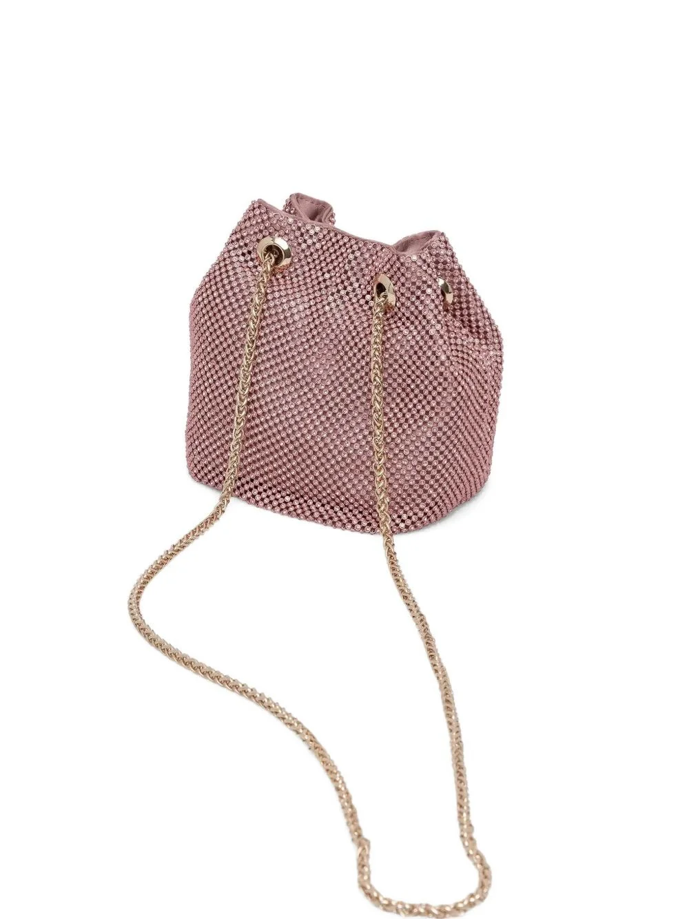 Sofia rhinestone-embellished mini bucket bag Highlights - Dusty rose - Rhinestone embellishment - Drawstring closure - Gold-tone hardware - Signature logo detail Imported Composition Aluminium 99%, Metallic Fibre 1% SIZE & FIT Measurement DEPTH 3.93 in(10 cm) HEIGHT 5.9 in(15 cm) STRAP 47.24 in(120 cm) WIDTH 5.9 in(15 cm)