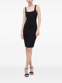 square neck dress Highlights - Black - Square neckline - Metal logo detail - Sleeveless - Tonal stitching - Knee length Imported Composition Fabric 100% Washing instructions Read Manufacturer Guidelines