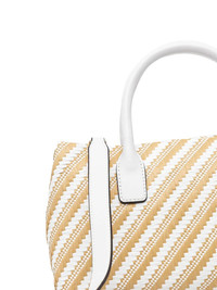 striped tote bag Highlights - White - Top handles - Detachable shoulder strap - Metal logo plaque - Padlock charm Imported Composition Outer: Polypropylene 100% Lining: Polyester 100% SIZE & FIT Measurement DEPTH 3.93 in(10 cm) HEIGHT 6.69 in(17 cm) WIDTH 11.81 in(30 cm) HANDLE 13.77 in(35 cm)
