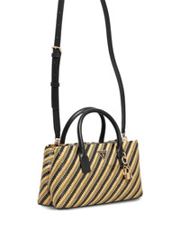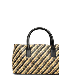 striped tote bag Highlights - Black and beige - Two top handles - Logo plaque - Detachable shoulder strap - Decorative padlock charm Imported Composition Lining: Polyester 100% Outer: Polypropylene 100% SIZE & FIT Measurement DEPTH 3.93 in(10 cm) HEIGHT 6.69 in(17 cm) WIDTH 11.81 in(30 cm)