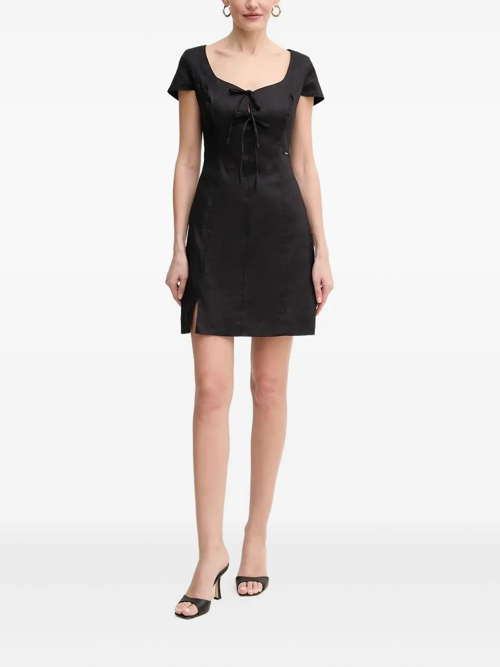 sweetheart-neck short-sleeve mini dress Highlights - Black - Short sleeves - Sweetheart neck - Side split - Linen-blend Imported Composition Linen/Flax 59%, Lyocell 39%, Elastane 2% Washing instructions Read Manufacturer Guidelines