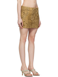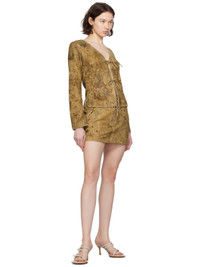 Tan Printed Leather Miniskirt