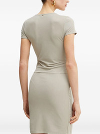 tie-front short-sleeve dress Highlights - Sage green - Short sleeves - Round neck - Tie fastening Imported Composition Outer: Viscose 70%, Polyester 20%, Elastane 4% Lining: Polyester 95%, Elastane 5% Washing instructions Read Manufacturer Guidelines