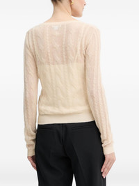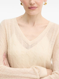 V-neck cable-knit jumper Highlights - Beige - Cable knit - V-neck - Long sleeves - Semi-sheer construction Imported Composition Wool 100% Washing instructions Read Manufacturer Guidelines