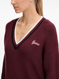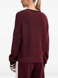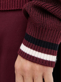 V-neck striped sweater Highlights - Burgundy - V-neck - Striped trim - Long sleeves - Ribbed hem and cuffs Imported Composition Acrylic 64%, Wool 27%, Polyester 9% Washing instructions Hand Wash