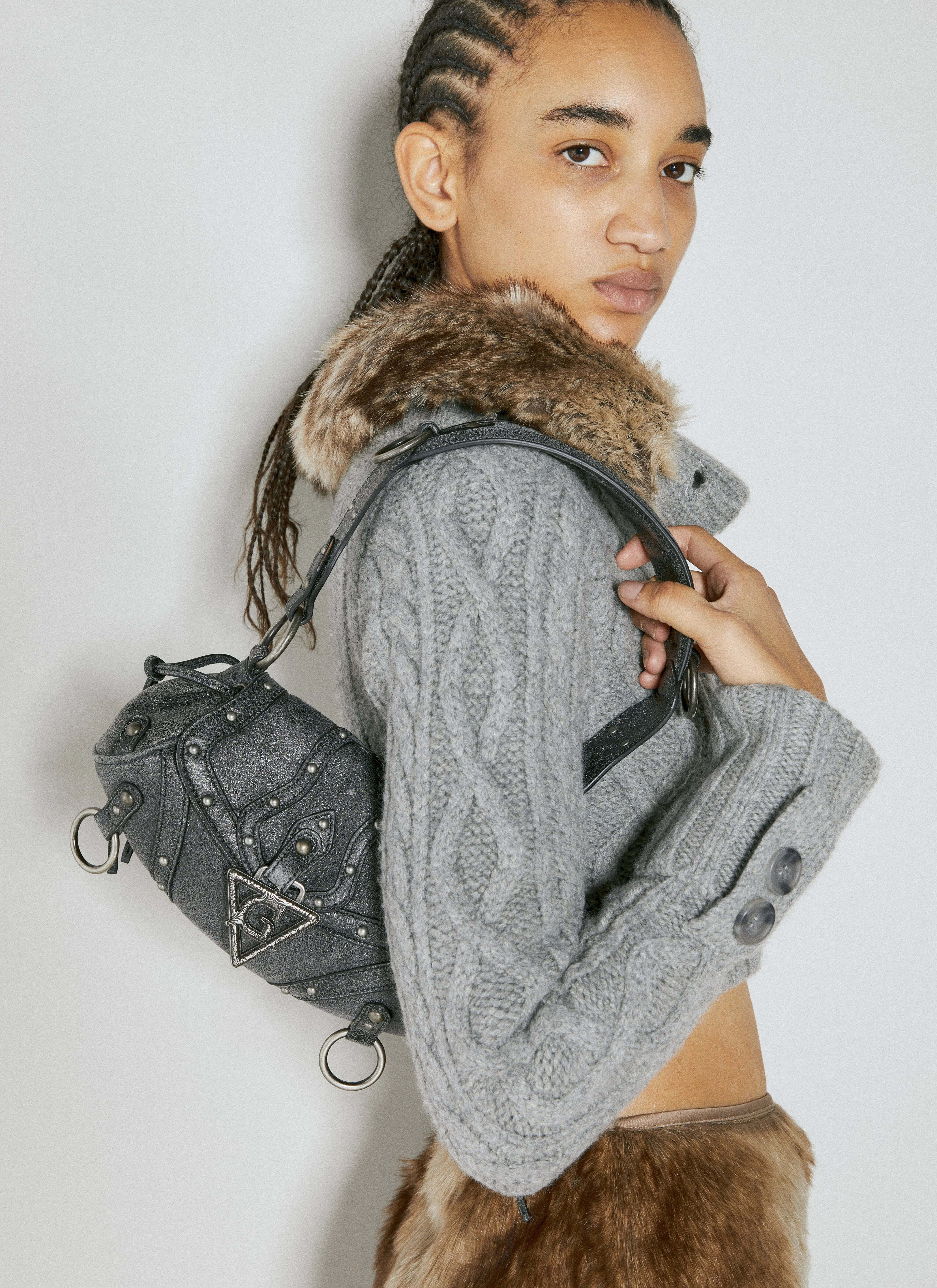 Washed mini shoulder bag in grained leather with front logo hardware. - Top handle - Magnetic-fastening front-flap closure - Logo hardware at front - Stud embellishment - One main compartment - Interior slip pocket - Made in Italy - 100% Leather - Color: Black - Code: W3BZ08L0SR0