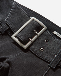 Women's Belted Bootcut Pants Black Sanded Wash