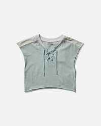 Guess USA Pique Mesh T-Shirt Minty Green Digging into America's Western and rural landscapes of the 80s and 90s, Guess USA aims to date back in and recall The American Way of those years. Guess USA's line differs from classic collections, firstly, for being focused on the American free spirit, cars, motorcycles, leather, the desert, and the idea of the Wild West. The collection uses premium cotton and leather materials, washed-out-vintage effects, and artisanal concepts. - 98% Cotton, 2% Elastane - Cotton Pique Fabric - Washed Effect - Cropped Fit - Lace Closure - Raw Hem - Style Code: W5GP02KCPJ0 F8S6