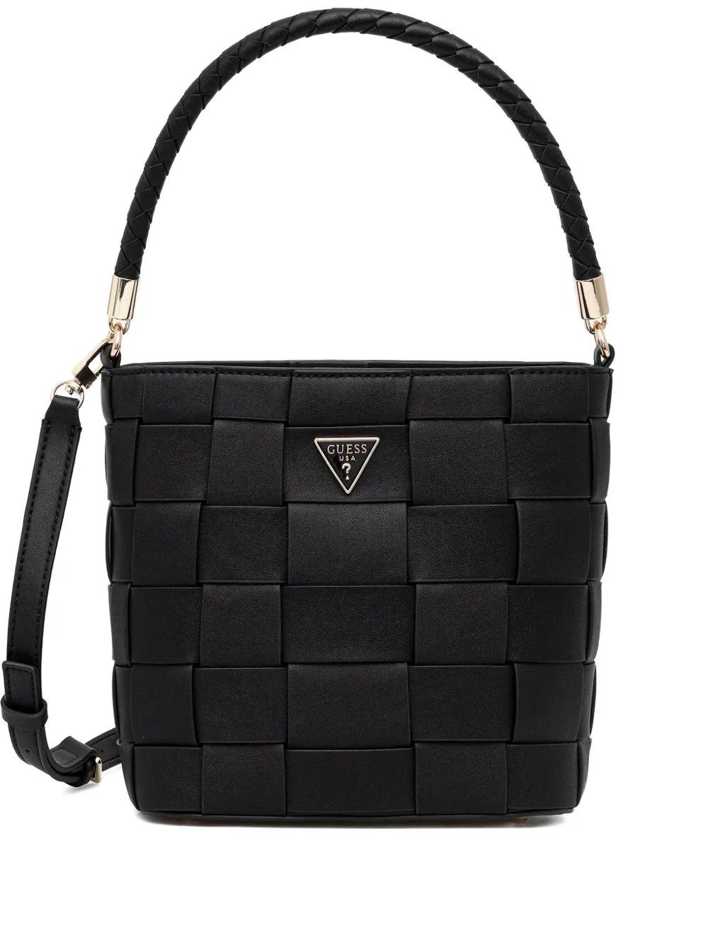 woven braided-handle tote bag Highlights - Black - Woven design - Braided top handle - Detachable and adjustable shoulder strap - Gold-tone hardware - Logo plaque Imported Composition Outer: Polyurethane 100% SIZE & FIT Measurement DEPTH 4.33 in(11 cm) HEIGHT 9.05 in(23 cm) WIDTH 8.26 in(21 cm) Washing instructions Read Manufacturer Guidelines