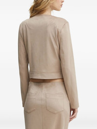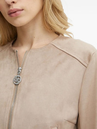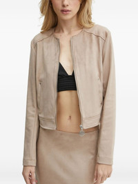 zip-fastening cropped jacket Highlights - Beige - Zip fastening - Cropped length - Logo pull - Welt pockets - Long sleeves Imported Composition Polyester 90%, Elastane 10% Washing instructions Read Manufacturer Guidelines