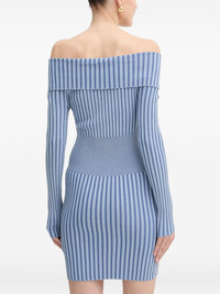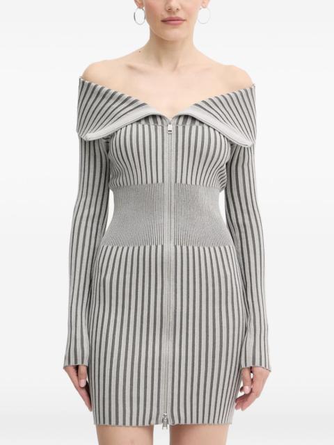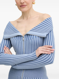 zip ribbed mini dress Highlights - Light blue - Striped - Zip fastening - Off-shoulder - Long sleeves - Ribbed Imported Composition Fabric 100% Washing instructions Read Manufacturer Guidelines