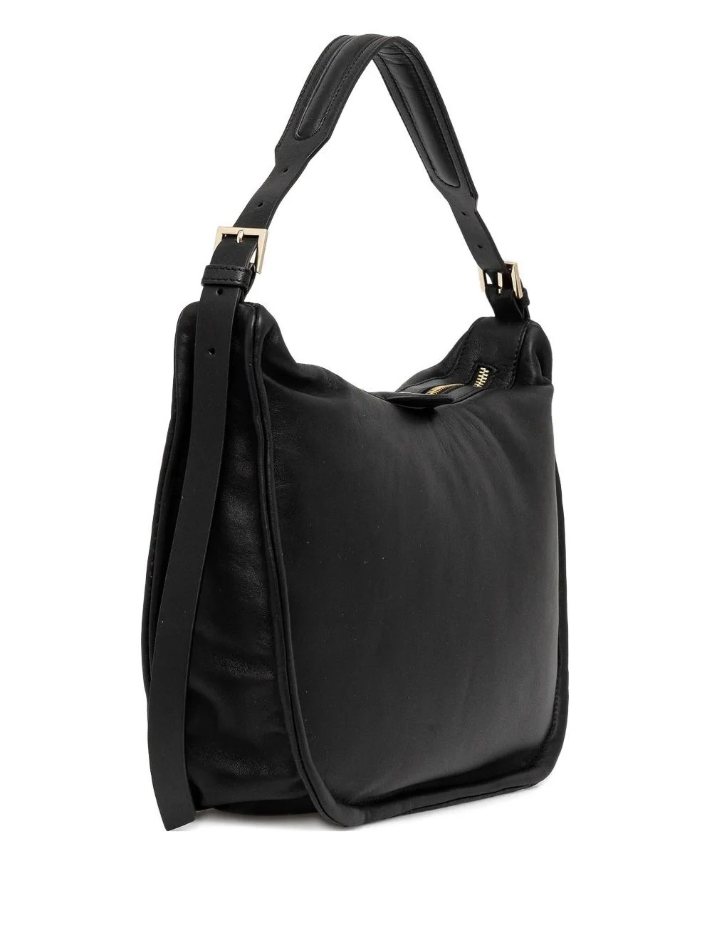 zip-top leather shoulder bag Highlights - Black - Calf leather - Gold-tone hardware - Buckled adjustable-strap - Zip fastening - Curved silhouette Imported Composition Outer: Calf Leather 100%