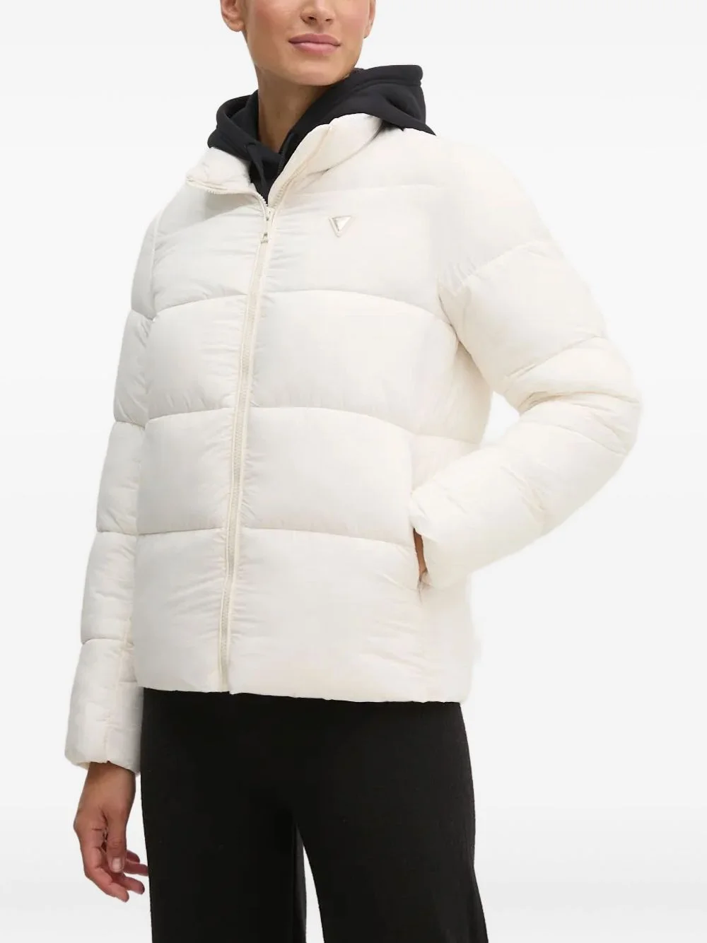 zip-up puffer jacket Highlights - White - Padded - Zip fastening - High neck - Logo plaque - Side pockets Imported Composition Fabric 100% Washing instructions Read Manufacturer Guidelines