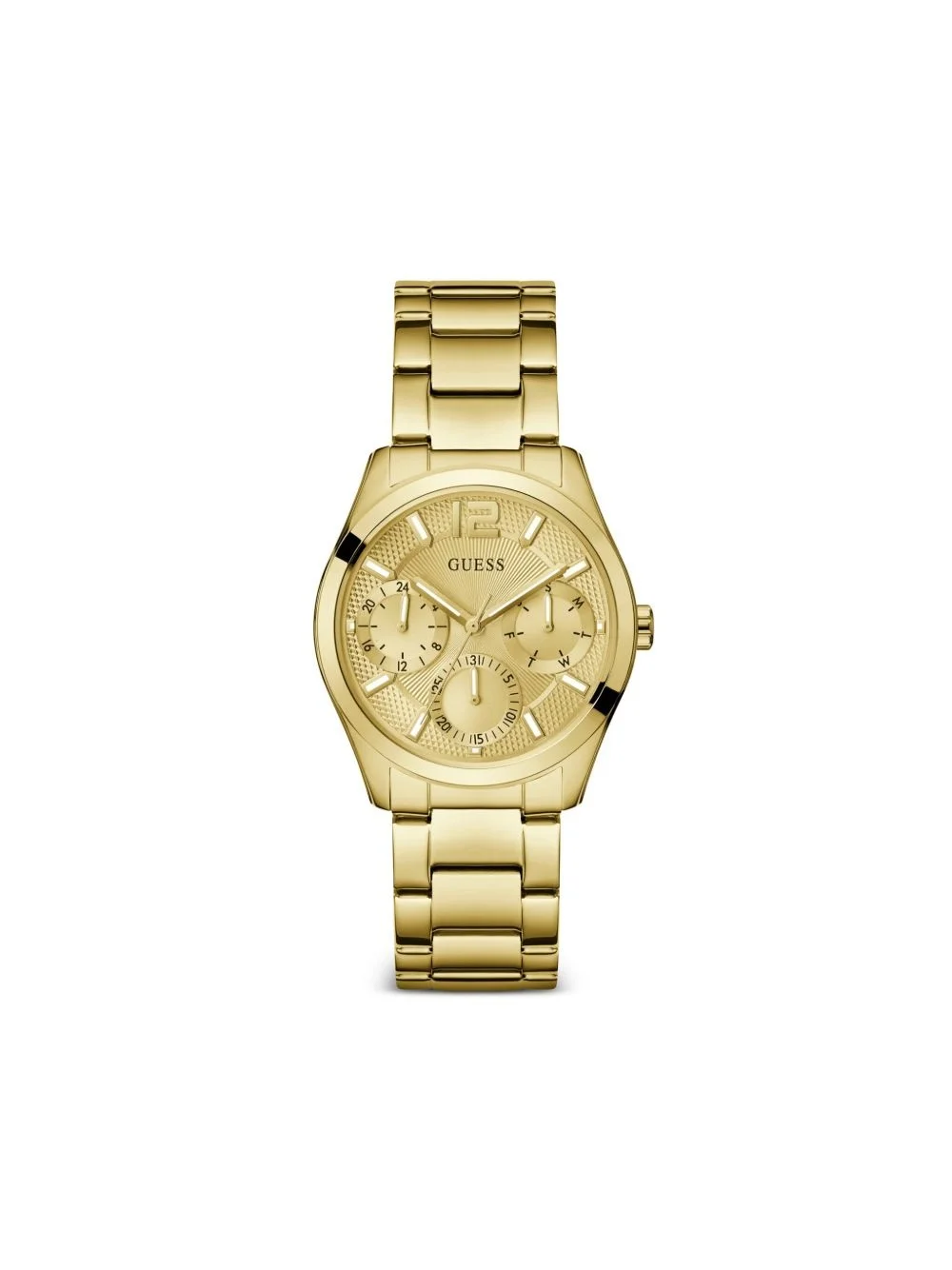 Zoe 38mm Highlights - 38mm - Gold-tone - Recycled steel/stainless steel - Index dial - Stick hands - Chronograph counters - Round face - Mineral glass - Centre-dent crown - Adjustable link bracelet - Folding clasp Imported SIZE & FIT Measurement DIAMETER 1.49 in(3.8 cm)