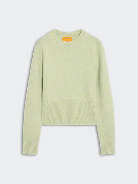 Crafted from our signature cashmere–silk yarn, the Alina Crew has a brushed, airy texture that feels soft and weightless. With a marled finish and easy silhouette, it pairs well with denim to elevate your finished look. DETAILS - MID-WEIGHT MARLED CREW - RIB NECK TRIM, HEM AND CUFF - HIGH RIB HEM FOR SCULPTED LOOK - SIGNATURE GIR BRANDING AT BACK NECK - 7 Gauge - 75% CASHMERE, 25% SILK - JAMILLA IS 5’ 11” / 180 CM AND IS WEARING A SIZE SMALL.