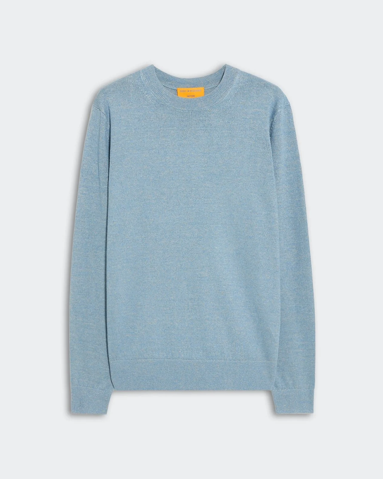 A core Guest In Residence essential, the Allday Crew is reimagined in a lightweight linen–silk blend for warmer days. With the same classic fit and clean crew neckline, this breathable knit offers effortless, timeless style designed to be worn season after season. DETAILS - LIGHT-WEIGHT JERSEY CREW - FIT OF THE ALLDAY CREW - RIB SLEEVE CUFF - GIR BRANDING AT BACK NECK - 54% LINEN, 46% SILK - LEAH IS 5' 10'' / 178 CM AND IS WEARING A SIZE MEDIUM. - PAULO IS 6' 2" / 189 CM AND IS WEARING A SIZE MEDIUM.