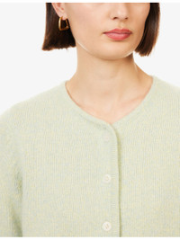 PRODUCT DETAILS - Guest In Residence cashmere and silk cardigan - 75% cashmere, 25% silk - Exposed button fastening at front - Regular fit, round-neck, long sleeves, all-over knitted, ribbed trims - Hand wash cold - True to size - Size small: length 20in / 51cm - Model is 5ft 10in/1.78m and wears a size small - Midweight, stretchy Ref: R04563632