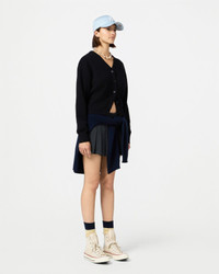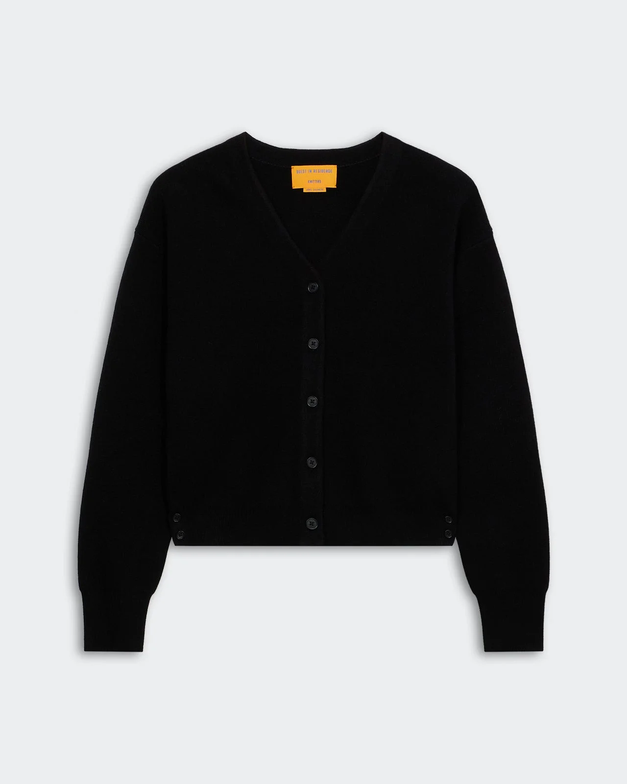 - Women's sizing, intended to fit true to size - V-NECK CARDIGAN - SIDE SLIT WITH BUTTONS AT HEM - RIB CUFF, HEM, AND NECK TRIM - Signature GIR branding at center back - Medium-weight knit - 100% Cashmere - Julia is 5' 9.5" / 177cm and is wearing a small. - Premium cashmere sourced from inner Mongolia, manufactured in China