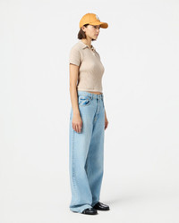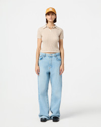 - Women's sizing, intended to fit true to size - Extra light-weight waffle knit - Semi-sheer - Polo shirt collar with three-button front placket - Textured waffle stitch - Signature GIR branding at center back neck - 100% Cashmere - Julia is 5' 10" / 178 cm and is wearing a Small. - Premium cashmere sourced from inner Mongolia, manufactured in China