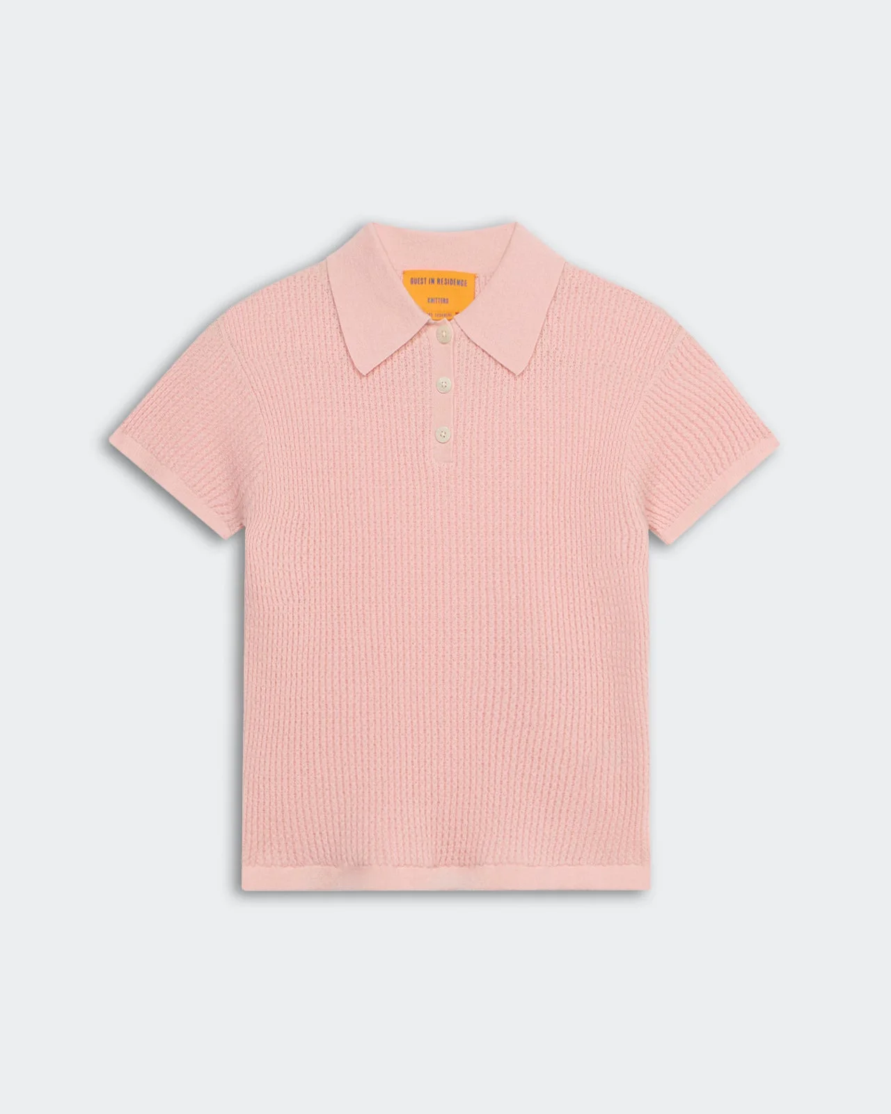- Women's sizing, intended to fit true to size - Extra light-weight waffle knit - Semi-sheer - Polo shirt collar with three-button front placket - Textured waffle stitch - Signature GIR branding at center back neck - 100% Cashmere - Julia is 5' 9.5" / 177cm and is wearing a small. - Premium cashmere sourced from inner Mongolia, manufactured in China