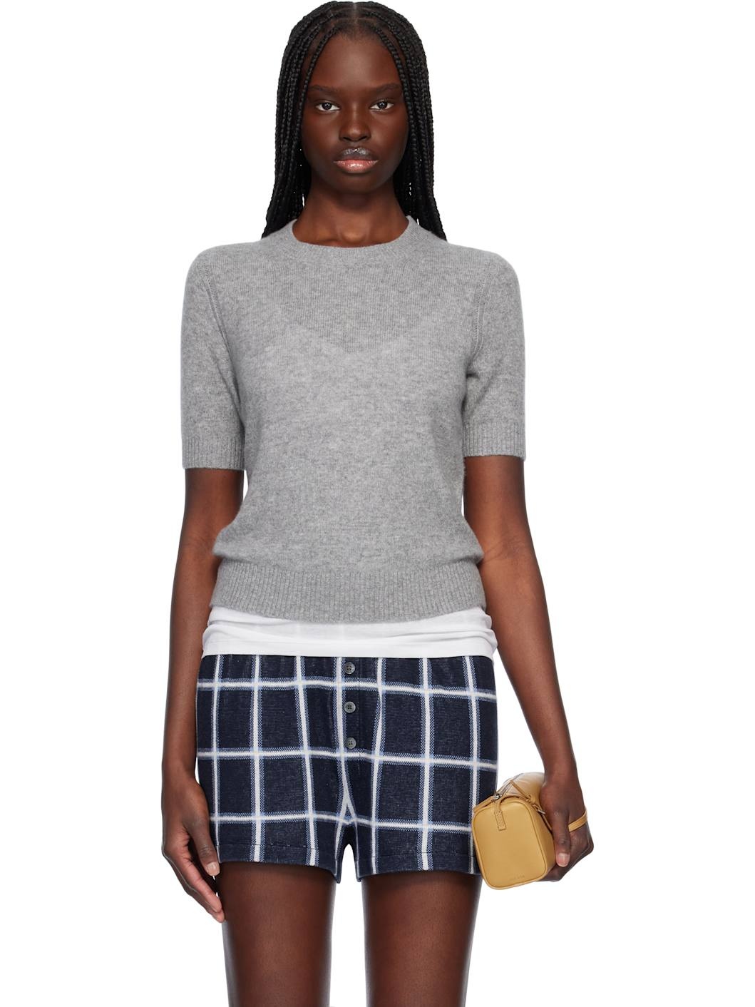 Lightweight knit cashmere T-shirt. · Rib-knit crewneck, hem, and cuffs · Cropped hem Supplier color: Heather grey 100% cashmere. Made in China 251173F110000