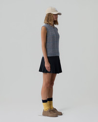 The Check Vest is a women’s cashmere sweater vest crafted from 100% cashmere with a classic check jacquard pattern. Designed with a relaxed fit and mid-weight feel, it’s a versatile layer — style it solo, over a crisp shirt, or under a blazer for an updated classic look. DETAILS - LIGHT-WEIGHT CABLE CHECK VEST - INTARSIA four COLOR CHECK PATTERN With CABLE STITCH - RIB and JERSEY ROLL NECK TRIM - SIGNATURE GIR BRANDING AT BACK NECK - 100% CASHMERE - Premium cashmere sourced from inner Mongolia, manufactured in China - CHIMENE IS 5' 9'' / 175.26 CM AND IS WEARING A SIZE SMALL.
