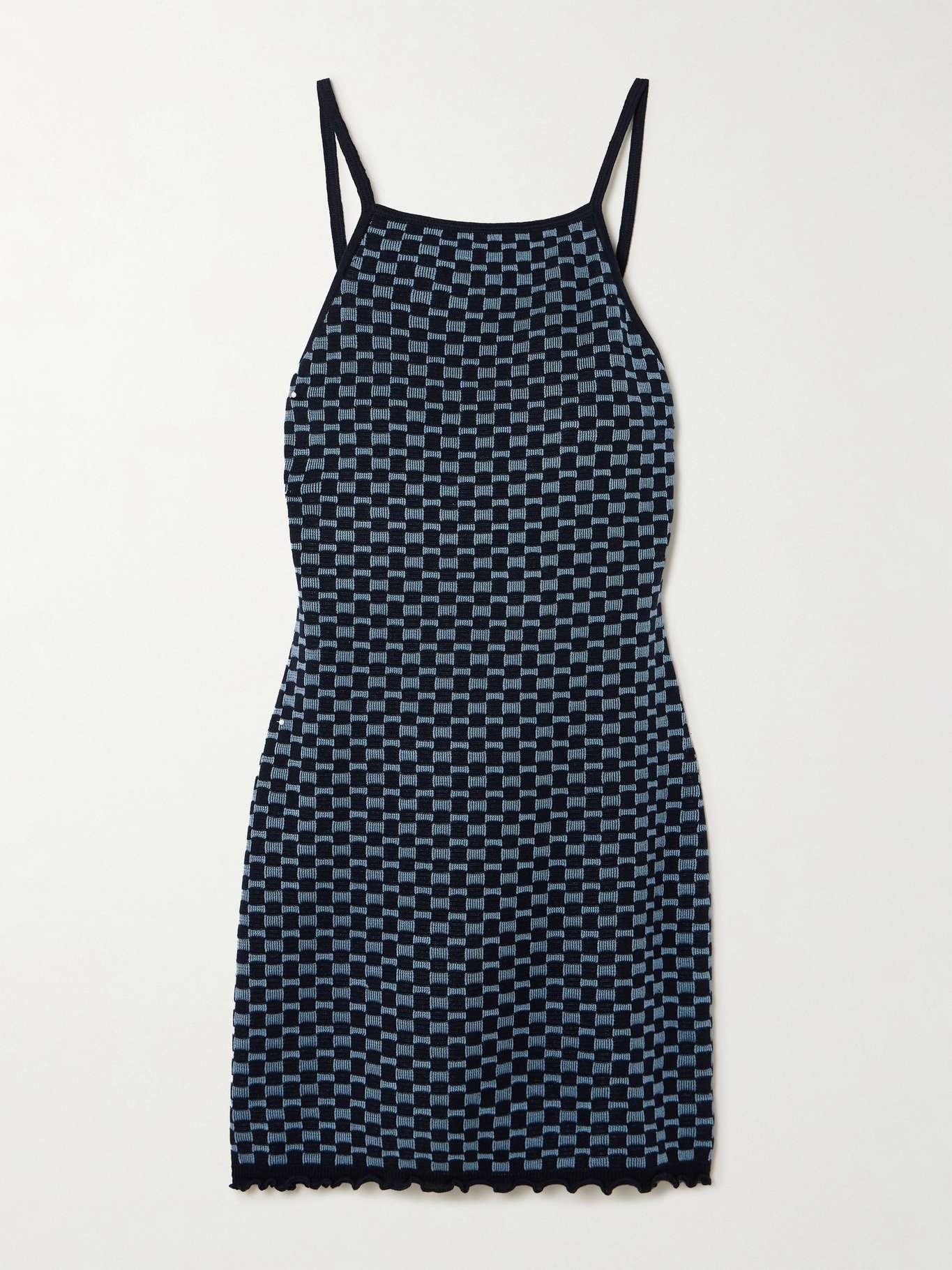 EDITORS'NOTES Guest In Residence specializes in clothing you'll cherish for years to come. Knitted in a checked pattern from cotton and silk-blend, this mini dress is both understated and elegant. The dainty ruffled hem calls for preppy dressing. SIZE & FIT Model measurements: - Fits true to size, take your normal size - Intended for a slim fit - Mid-weight knit - Model is 180cm/ 5'11" and is wearing a size Small - Bust: 80cm/ 31.5" - Waist: 65cm/ 25.5" - Hip: 89cm/ 35" DETAILS & CARE - Navy and light-blue cotton and silk-blend - Slips on - 82% cotton, 18% silk - Hand wash or dry clean - Designer color: Midnight/ Denim Blue
