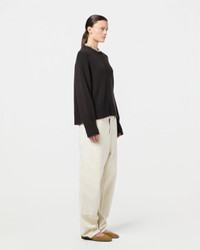 - Women's sizing, intended for an oversized fit - Heavy-weight Crew neck - Dropped shoulder - Reverse jersey detail around arm & shoulder with tuck stitch - Ribbed neck trim, cuff, and hem - Side slit at hem - Jersey cable - Signature GIR branding at center back - 100% Cashmere - ELLA IS 5' 11" / 180 CM and is wearing a Small. - Premium cashmere sourced from inner Mongolia, manufactured in China