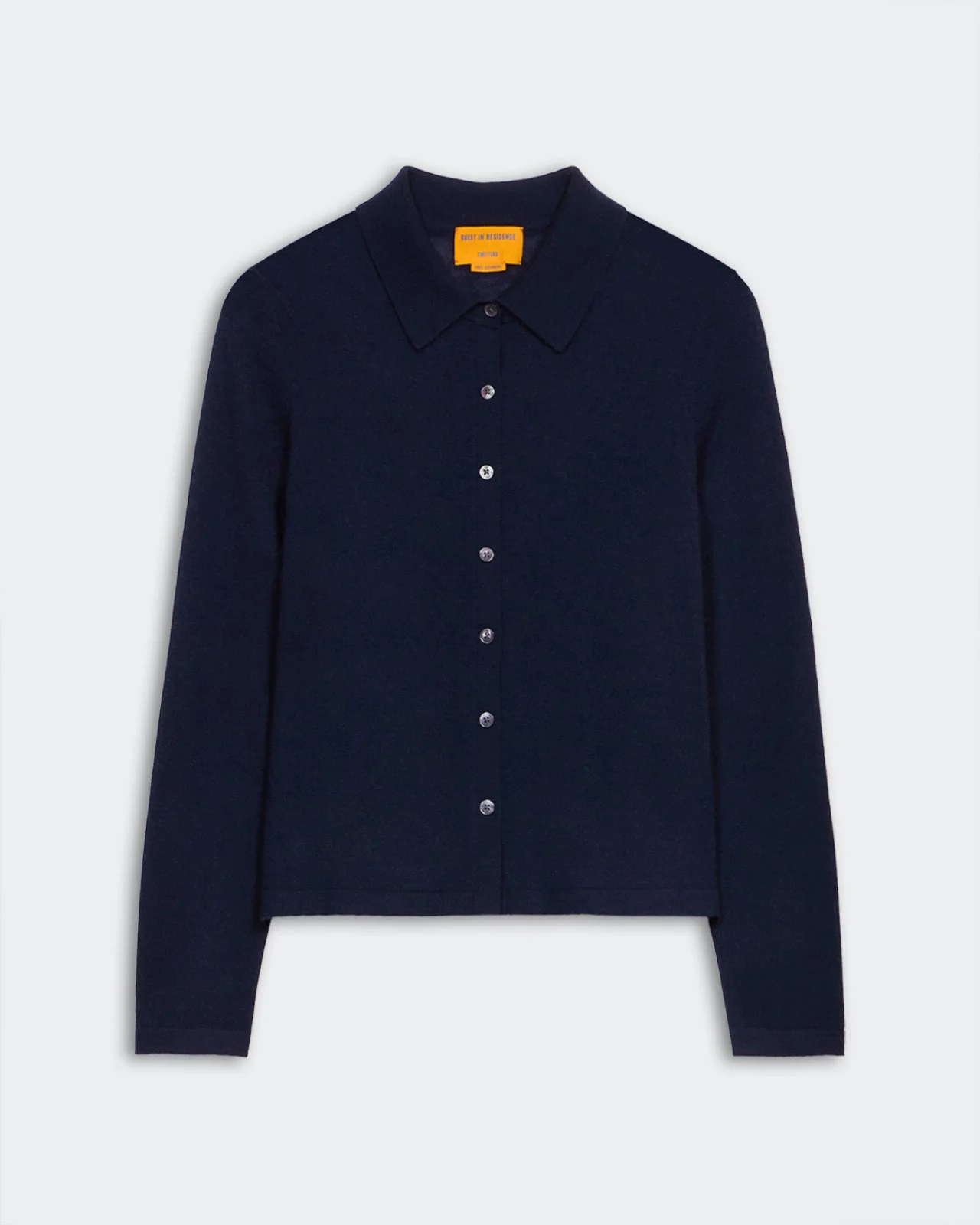 - Women's sizing, intended for a slim fit. - Runs small, sizing up is recommended. - Extra light-weight Button-down shirt - Shirt collar with stand - Front patch pocket - Signature GIR branding at center back - 100% Cashmere - Julia is 5' 9.5" / 177cm and is wearing a small. - Premium cashmere sourced from inner Mongolia, manufactured in China