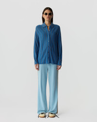 The Fine Stripe Showtime Shirt updates a Guest In Residence essential with soft, understated stripes. Knit from featherweight 100% cashmere, it offers the same relaxed fit and easy feel—an everyday button-down designed for effortless, lived-in style. DETAILS - FEATHER WEIGHT STRIPED SHOWTIME SHIRT - HORIZONTAL KNIT - CENTER FRONT BUTTON CLOSURE - PATCH POCKET ON LEFT CHEST - SHIRT COLLAR WITH STAND - GIR BRANDING AT BACK NECK - 100% CASHMERE - Premium cashmere sourced from inner Mongolia, manufactured in China. - LEAH IS 5' 10'' / 178 CM AND IS WEARING A SIZE SMALL.