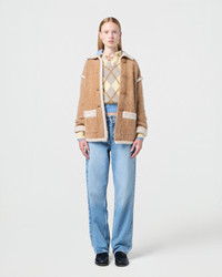 - Brushed cashmere jacket - shearling style jacket - Mid-weight knit - Grizzly-brushed effect - Front closure with fabric covered buttons - Contrasting knitted shearling collar, cuffs, hem, and pocket detail - Two front patch pockets - Contrast knitted shearling at the shoulder seam - Signature gir branding at center back - Ellemijn is 5' 8” / 177 CM and is wearing a size XS. - 100% cashmere - Premium cashmere sourced from inner Mongolia, manufactured in China