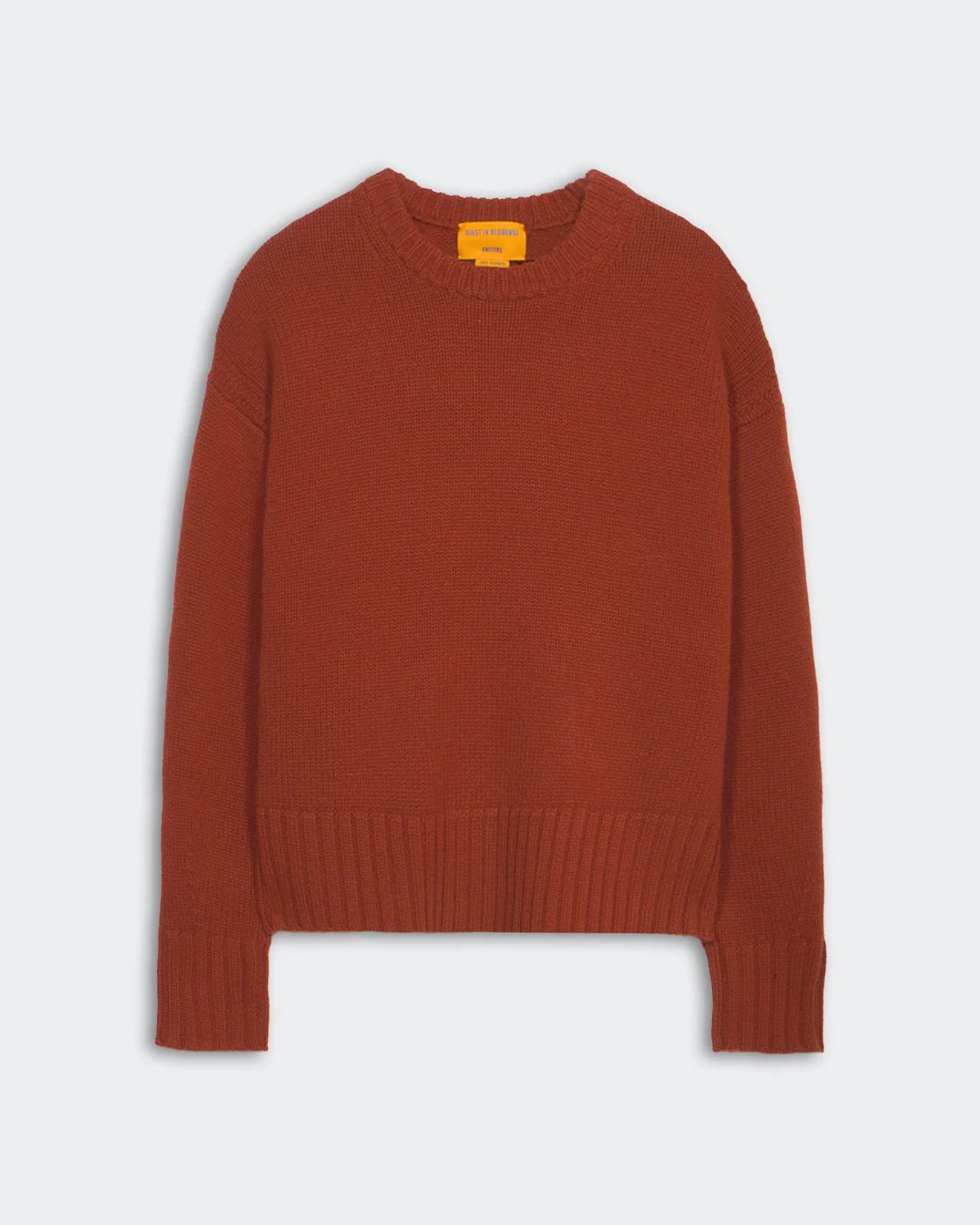 - Women's sizing, intended for an oversized fit - Heavy-weight Crew neck - Dropped shoulder - Reverse jersey detail around arm & shoulder with tuck stitch - Ribbed neck trim, cuff, and hem - Side slit at hem - Jersey cable - Signature GIR branding at center back - 100% Cashmere - ELLA IS 5' 11" / 180 CM and is wearing a Small. - Premium cashmere sourced from inner Mongolia, manufactured in China