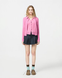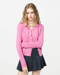 - LIGHT-WEIGHT JERSEY STITCH CARDIGAN - RIB HEM AND CUFF TRIM - JERSEY TUBULAR NECK TRIM - FRONT PLACKET CLOSURE, seven BUTTONS - Signature GIR branding at center back - 100% Cashmere - FLOOR IS 5' 10" / 178 CM and is wearing a Small. - Premium cashmere sourced from inner Mongolia, manufactured in China