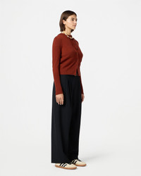 - LIGHT-WEIGHT JERSEY STITCH CARDIGAN - RIB HEM AND CUFF TRIM - JERSEY TUBULAR NECK TRIM - FRONT PLACKET CLOSURE, seven BUTTONS - Signature GIR branding at center back - 100% Cashmere - Julia is 5' 9.5" / 177cm and is wearing a small. and is wearing a Small. - Premium cashmere sourced from inner Mongolia, manufactured in China