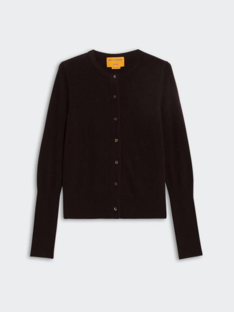 - LIGHT-WEIGHT JERSEY STITCH CARDIGAN - RIB HEM AND CUFF TRIM - JERSEY TUBULAR NECK TRIM - FRONT PLACKET CLOSURE, seven BUTTONS - Signature GIR branding at center back - 100% Cashmere - Yana is 5' 10" / 178 CM and is wearing a SMALL. - Premium cashmere sourced from inner Mongolia, manufactured in China