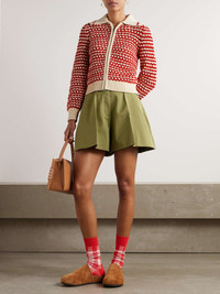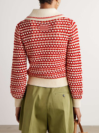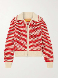 EDITORS'NOTES Guest In Residence's collections are uplifting, comforting and enduring – the same qualities founder Gigi Hadid found in the knitwear her parents gave her before moving to New York. This 'Kirby' cardigan is knitted from cotton-blend in an open construction and has ribbed trims and a striped collar. Style yours with jeans, loafers and a pair of the brand's socks. SIZE & FIT Model measurements: - Fits true to size, take your normal size - Designed for a slim fit - Mid-weight, open knit - Model is 180cm/ 5'11" and is wearing a size Small - Bust: 85cm/ 33.5" - Waist: 62cm/ 24.5" - Hip: 88cm/ 34.5" DETAILS & CARE - Red and cream cotton-blend - Two-way zip fastening through front - 65% cotton, 35% polyamide - Hand wash or dry clean