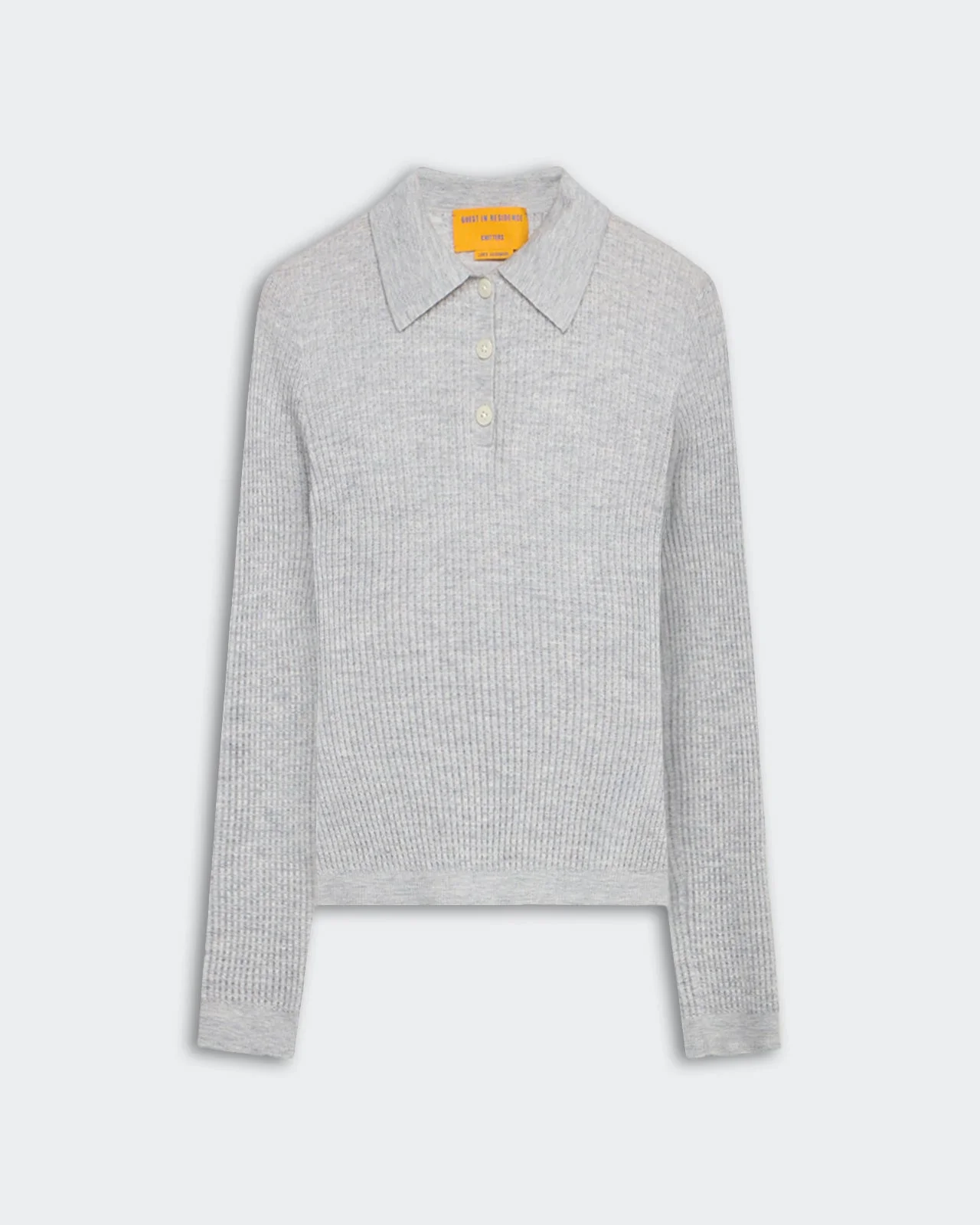 DETAILS - Women's sizing, intended to fit true to size - Extra light-weight waffle knit - RIB POLO COLLAR - Three-button front placket closure - RIB HEM AND CUFF TRIM - Textured waffle stitch - 100% Cashmere - Premium cashmere sourced from inner Mongolia, manufactured in China