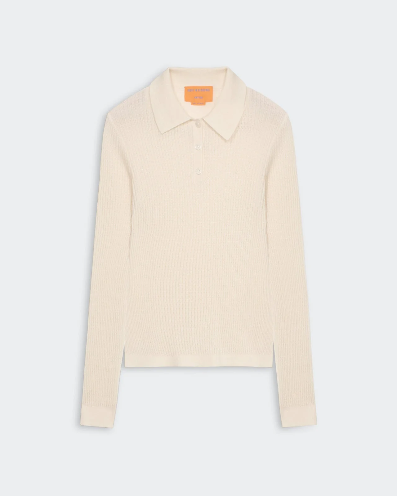 - Women's sizing, intended to fit true to size - RIB POLO COLLAR - Three-button front placket closure - RIB HEM AND CUFF TRIM - Textured waffle stitch - Extra light-weight waffle knit - 100% Cashmere - Julia is 5' 9.5" / 177cm and is wearing a small. - Premium cashmere sourced from inner Mongolia, manufactured in China