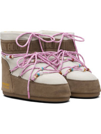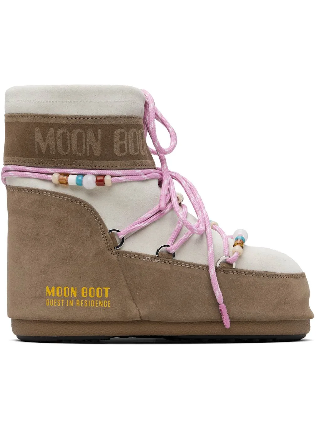 Off White & Taupe Moon Boot Edition Icon Low Beaded Suede Boots