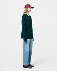 - Men's sizing, Women should size down for a less oversized fit. - Light-weight Crew neck - Dropped shoulder - Shirttail curved hem - Jersey roll hem, neck, and cuff - Signature GIR branding at center back neck - 100% Cashmere - FLOOR IS 5' 10" / 178 CM and is wearing a medium. - BRADLEY IS 6' 2.5" / 189 CM and is wearing a Medium. - Premium cashmere sourced from inner Mongolia, manufactured in China