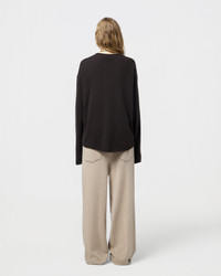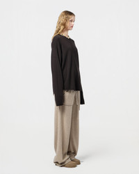 - Men's sizing, Women should size down for a less oversized fit. - Light-weight Crew neck - Dropped shoulder - Shirttail curved hem - Jersey roll hem, neck, and cuff - Signature GIR branding at center back neck - 100% Cashmere - FLOOR IS 5' 10" / 178 CM and is wearing a size medium. - BRADLEY IS 6' 2.5" / 189 CM and is wearing a Medium. - Premium cashmere sourced from inner Mongolia, manufactured in China