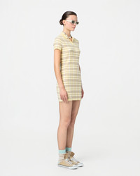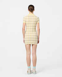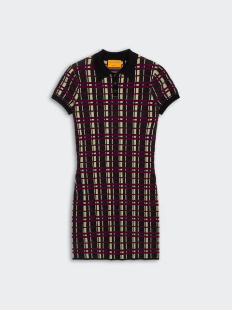 - LIGHT-WEIGHT RIB PLAID POLO DRESS - SHORT SLEEVE, MID-THIGH LENGTH - POLO COLLAR WITH THREE BUTTON FRONT PLACKET - Signature GIR branding at center back - 70% SILK 30% LINEN BLEND - ELLA IS 5' 11" / 180 CM AND IS WEARING A SMALL.