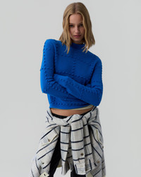 The Popcorn Top brings texture to your everyday look. Crafted from a soft cashmere blend, this women’s cropped mock neck sweater features our popcorn design for a subtly playful look. Lightweight yet cozy, it layers perfectly with denim or skirts for year-round wear. DETAILS - Women's sizing, intended for a cropped, slim fit - Medium-weight knit - MOCK NECK WITH JERSEY ROLL EDGE - JERSEY ROLL HEM AND SLEEVE TRIM - Signature GIR branding at center back - 70% MERCERIZED WOOL, 30% CASHMERE - CHIMENE IS 5' 9'' / 175.26 CM AND IS WEARING A SIZE SMALL.