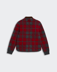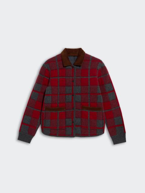- Cashmere blend plaid jacket - Quilted, insulated jacket - Mid-weight - Reversible - Detachable corduroy collar - Recycled polyester lining - Two front pockets with corduroy trim - Jacquard plaid knit design - Front closure with metal snaps - Curved shirt-tail hem - Solid color rib sleeve cuff - Inside pockets - Signature gir branding at center back - 70% mercerized wool, 30% cashmere - NADINE IS 5' 9" / 175 CM and is wearing a Small.