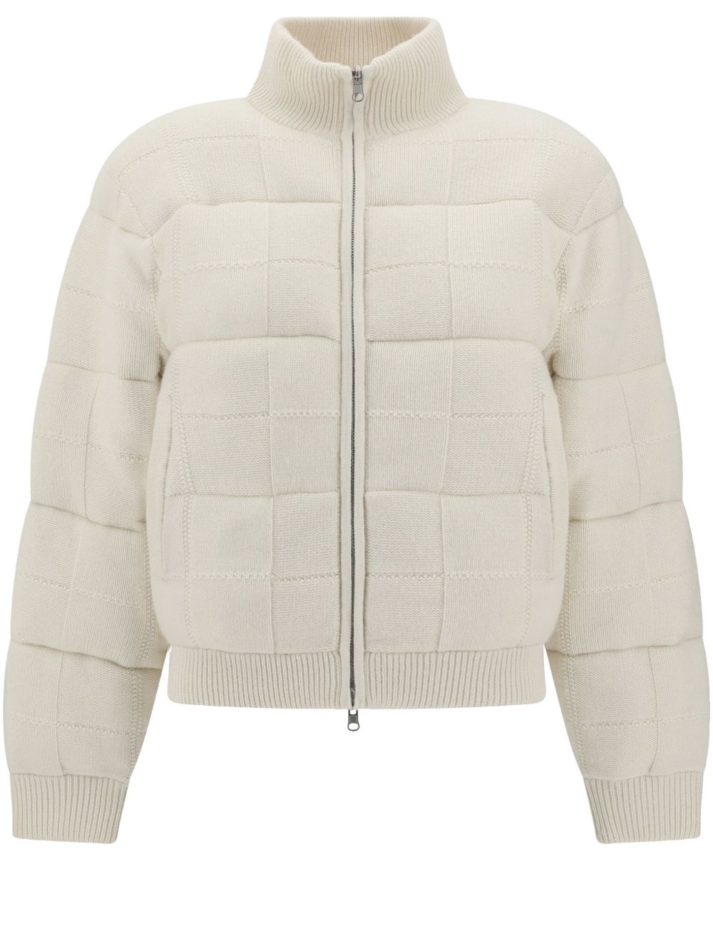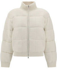 quilted puffer jacket Highlights - Light beige - Front two-way zip fastening - Two side welt pockets - High neck - Ribbed trim Imported Composition Lining: Down 100% Outer: Wool 70%, Cashmere 30%