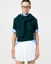 - Women's sizing, intended for a cropped, relaxed fit - LIGHT-WEIGHT JERSEY CREWNECK SWEATER TEE - RIB HEM, NECK, AND CUFF TRIM - ARMHOLE TUCK STITCH DETAIL - Signature GIR branding at center back - 100% CASHMERE - ELLA IS 5' 11" / 180 CM and is wearing a Small. - Premium cashmere sourced from inner Mongolia, manufactured in China