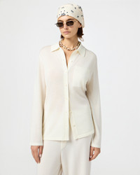 A core Guest In Residence staple, the Showtime Shirt is crafted from extra lightweight 100% cashmere with a relaxed fit and front pocket. This cashmere button-down shirt is an effortless choice for workdays, weekends, and everything in between. DETAILS - Women's sizing, intended to fit true to size - Button-down shirt - Shirt collar with stand - Front patch pocket - Signature GIR branding at center back neck - Extra light-weight knit - 100% Cashmere - Julia is 5' 9.5" / 177cm and is wearing a small. - Premium cashmere sourced from inner Mongolia, manufactured in China